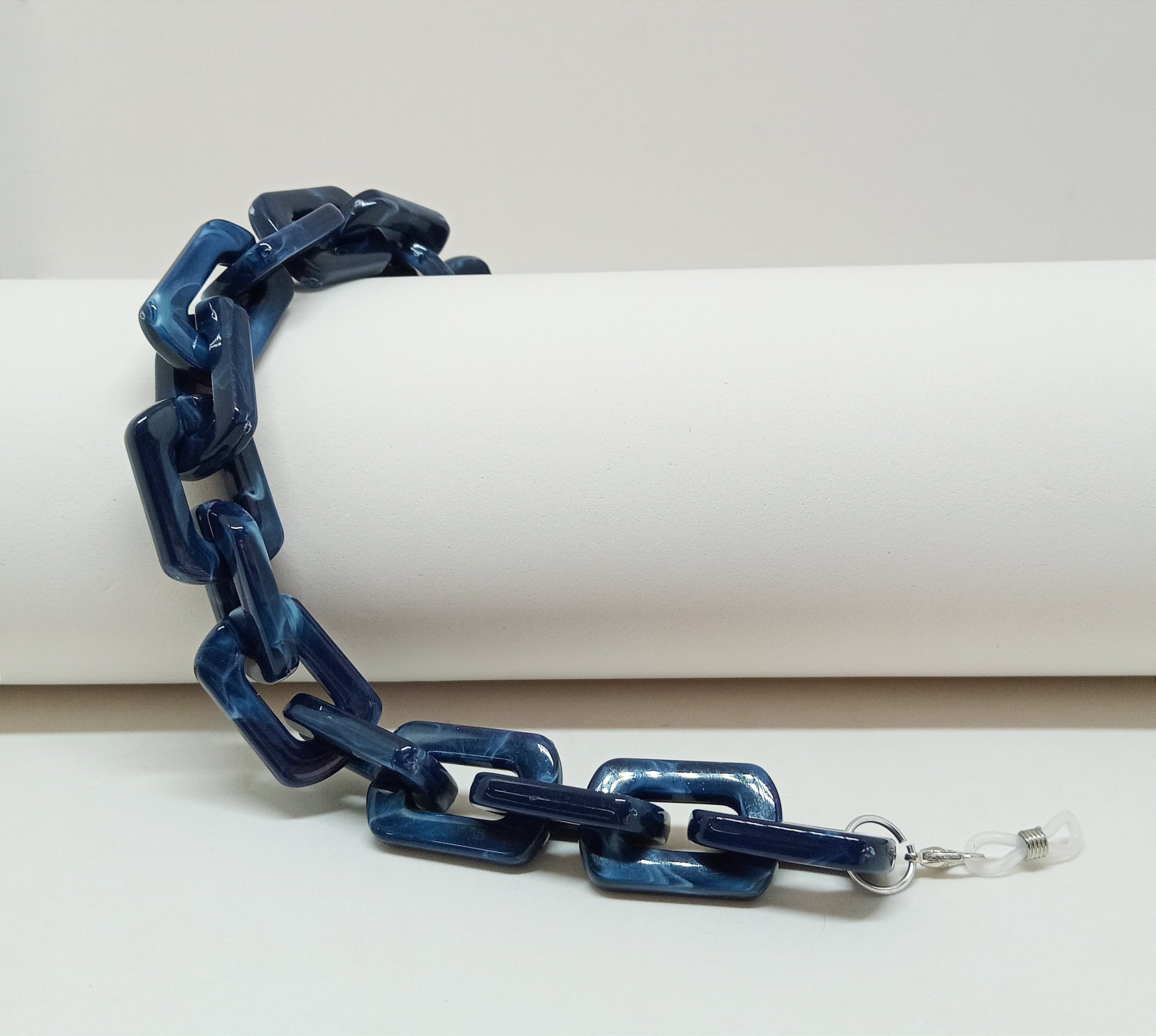 Material: Resina leve e resistente; Cores disponíveis: Variadas; Funcionalidade: Serve como cordão para óculos e também como colar.
