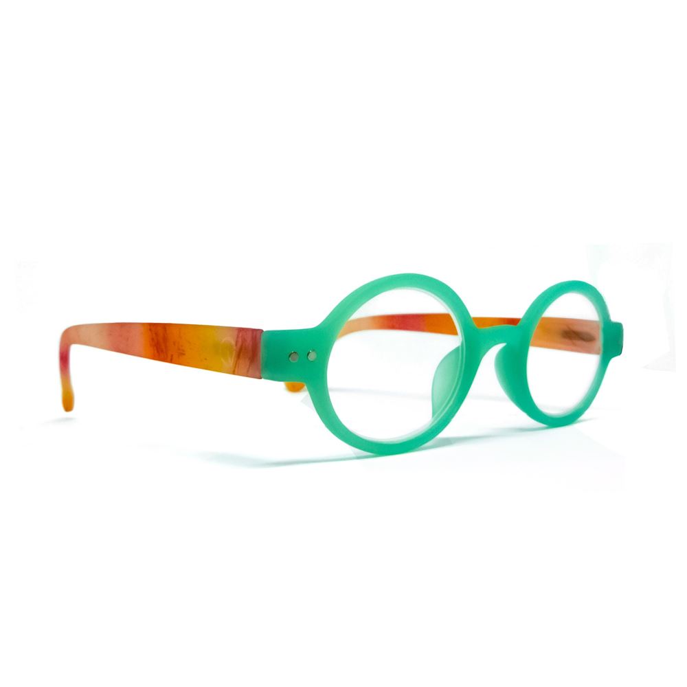 Óculos de leitura com DP médio, ângulo pantoscópico e lentes asféricas.